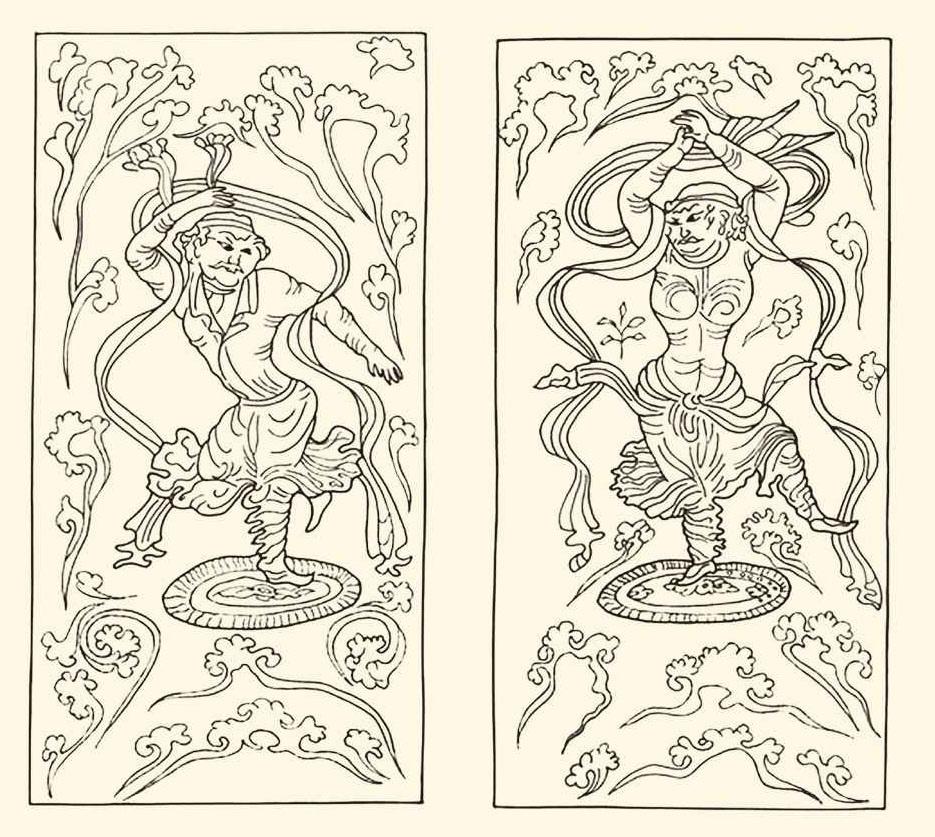 宁夏盐池县苏步井窨子梁唐墓出土。门均呈长方形,出土时有铁锁扣,每扇石门正中浅雕一个胡旋舞男子。